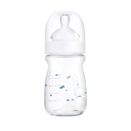 Le biberon en verre col étroit de Bébé Confort est spécialement traité incassable.