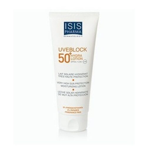 Isispharma Uveblock 50+hydra lotion Très haute protection solaire lotion hydratante SPF 50+ offre un SPF50 optimal + UVB / protection UVA et maintient l’ hydratation de la peau lors de l’ exposition au soleil. La texture fluide et lisse est rapidement absorbé. Pas de traces blanches après l’ application.